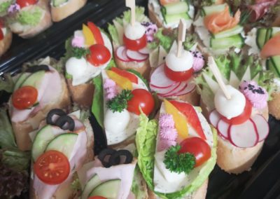 Oferujemy szeroki zakres usług i zawsze dopasowujemy je do możliwości i życzeń naszych klientów. Zapewniamy zarówno kompleksową organizację obejmującą obsługę kelnerską, stacje tematyczne i serwowane posiłki jak i dostarczenie gotowego cateringu lub bufetu na mniejsze uroczystości.